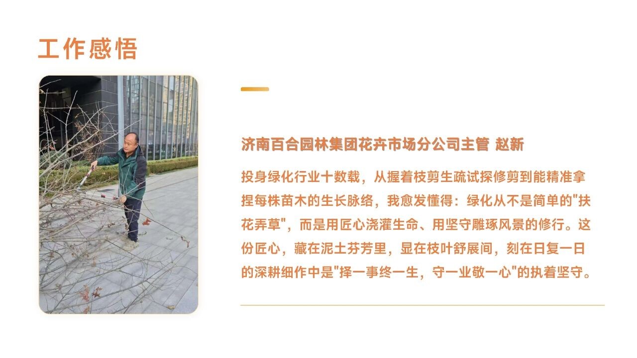 匠心足跡 強調(diào)園林人的專業(yè)精神和一步一個腳印的奮斗歷程。“百合視界“指通過員工的視角(感悟和隨手拍)展現(xiàn)的公司風貌。突出專業(yè)性和員工視角。
