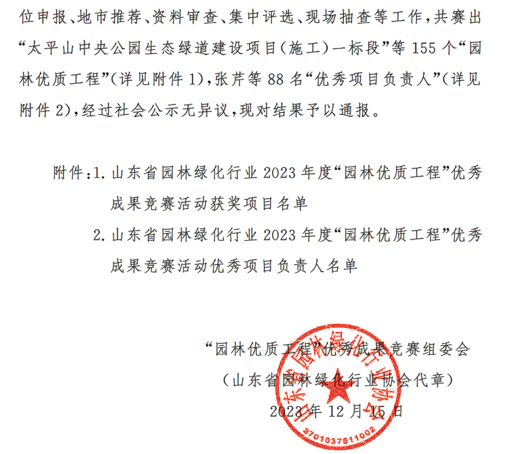 百合園林集團(tuán)參賽“園林優(yōu)質(zhì)工程”優(yōu)秀成果競賽活動(dòng)百合園林集團(tuán)喜獲精細(xì)化綠化養(yǎng)護(hù)項(xiàng)目一等獎(jiǎng)