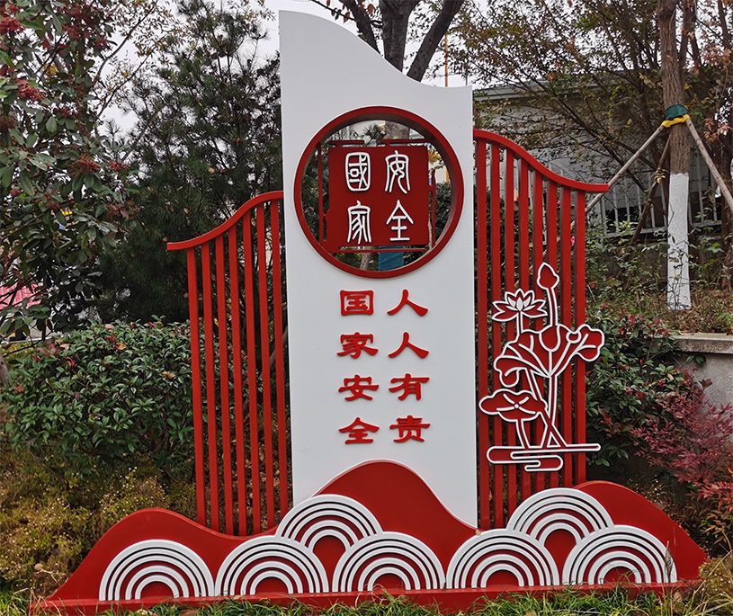 由濟南百合園林集團承建的“國家安全教育主題公園雕塑”順利落成。主雕塑《周恩來與龍?zhí)度堋芳皣野踩麄髡故揪坝^小品分布在公園重要節(jié)點,在此作為普及國家安全知識宣傳教育陣地,營造出“國家安全,人人參與”的濃厚氛圍。