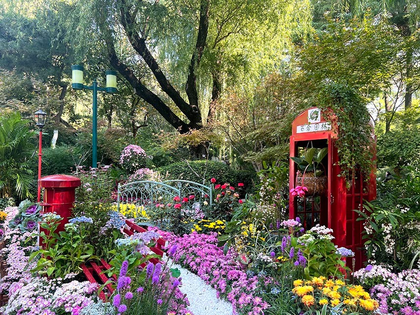 金秋,百合園林集團(tuán)參展第44屆趵突泉金秋菊展,設(shè)計主題為《莫奈花園》,整體設(shè)計打破傳統(tǒng)的布景形式,巧妙地將電話亭、郵箱、小橋、白沙等元素融入其中,色彩搭配鮮明、高低層次錯落有致,用浪漫熱烈的設(shè)計手法,突出精致菊展的藝術(shù)特色,再現(xiàn)莫奈花園的自然美景,構(gòu)建新的園林調(diào)色盤。