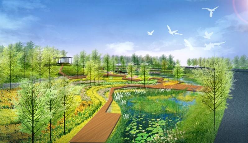 倡導健康生活原則:設計中將健康生活的理念滲透在區(qū)域性公園的設計之中,期待攜妻子護子于山中漫步,體會森林氧吧并登高遠眺的快樂生活、健康生活的情景。