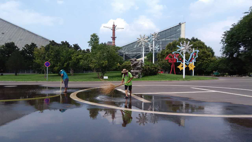 1、道路保潔:保潔面積共計(jì)230萬(wàn)平米。定期對(duì)道路和廣場(chǎng)進(jìn)行沖刷,果皮箱、燈桿、座椅等設(shè)施每天進(jìn)行檢查,發(fā)現(xiàn)污漬立即清潔。每天在道路上安排工作人員不間斷巡邏,發(fā)現(xiàn)污物立即清理。