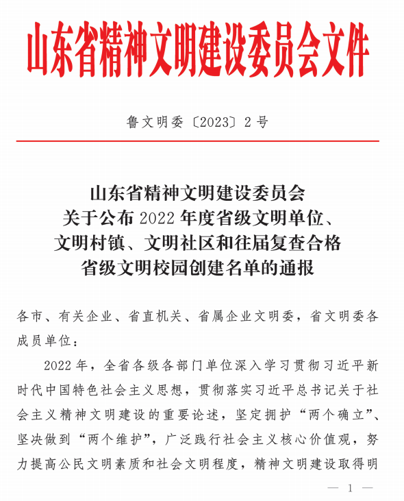 近日,山東省精神文明建設(shè)委員會(huì)下發(fā)了《關(guān)于公布2022年度省級(jí)文明單位、文明村鎮(zhèn)、文明社區(qū)和往屆復(fù)查合格省級(jí)文明校園創(chuàng)建名單的通報(bào)》,百合園林集團(tuán)喜獲“省級(jí)文明單位”榮譽(yù)稱號(hào)。